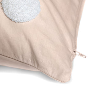 This spotted 100% cotton square cushion cover adds a contemporary, playful finishing touch to your home with textured tufted white circles on a pink background.