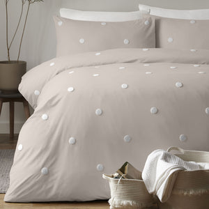 Create the perfect Boutique bedroom with this stunning, 100% Cotton plain dyed collection from Appletree. The bedding set features a polka dot tuft for a perfect finish and pillowcase(s) are included with the set