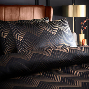 Elevate your bedroom with the Cocktail Duvet Cover Set. Featuring luxurious geometric jacquard with shimmering metallic yarn and a soft, plain dyed polyester reverse. The elegant button closure completes this masterpiece of refined opulence and sophistication.