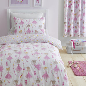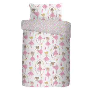 Twirl your way to dreamland with this beautiful ballerina bedding set – the perfect bedtime resting place once you’ve finally kicked off your dancing shoes. The reversible design in easy care polycotton is a tippy-toe treat for budding ballet dancers everywhere.