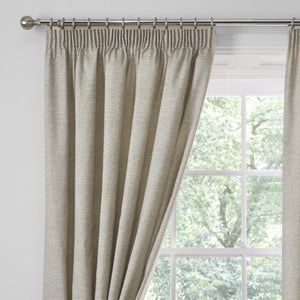 A simple textured print creates the perfect backdrop for these cotton rich, brushed curtains. Not only do these curtains feel soft and cosy, but they are also fully lined with a special, thermal lining that helps prevent the heat escaping from your room whilst also helping to keep the light out. They are finished with a 3" pencil pleat header tape and they include a pair of tiebacks so you can dress your curtains when they are open.