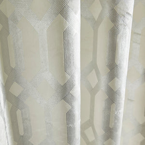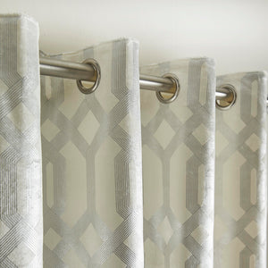 Foil printed velvet is the ultimate in luxury home furnishing for this season. Featuring a foil printed interlocking hexagon design, these curtains and cushions are gorgeously coloured foil and encapsulates sophisticated glamour that is the heart and soul of this collection.