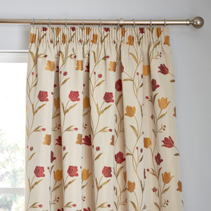 Juliette Pencil Pleat Curtains in Natural/Red