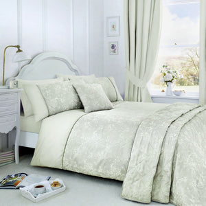 The Jasmine bedding set is a classic elegant floral Jacquard weave produced on a heavyweight, cotton rich fabric. The design is trimmed with a rope effect top border and is enhanced with a plain-dyed top cuff to create an elegant classic collection that will look sensational in any bedroom.