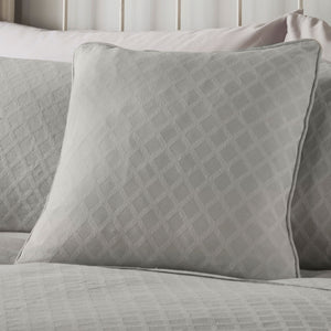 With a chic modern geometric jacquard pattern & soft cotton rich fabric, this silver scatter cushion cover will help create and accentuate the tranquil boudoir of your dreams. Featuring pipe detail around the edge and a central jacquard panel gives your room a luxurious style update.