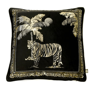 Another dramatic tiger design cushion from Laurence Llewelyn-Bowen. Printed on lavish metallic gold , this soft velvety cushion is a perfect complement to the LLB Sleeping Beauty Collection .