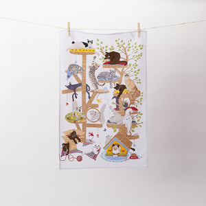 Moggie Mahem Cotton Tea Towel in Multicolour