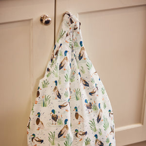 Adorn your kitchen with rustic farmhouse charm with our Farmhouse Ducks collection. Hand-painted mallard ducks waddle, swim and shake their feathers across this homely range of kitchen accessories. The soothing sage green tones are enhanced with pops of orange bulrushes and the paint spattered water brings movement and life to the scene. An endearing illustration that’s set to be this season’s bestseller.