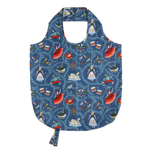 12 Days of Christmas Foldable Tote Bag Medium in Blue